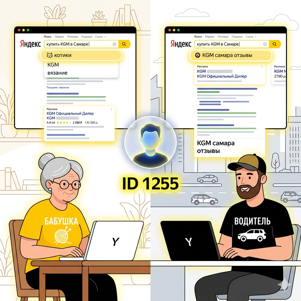 Представьте, что человек уже месяц интересуется покупкой китайского автомобиля - смотрит обзоры, сидит на авто.ру, изучает конкретные модели. В какой-то момент он вводит запрос «купить KGM в Самаре».