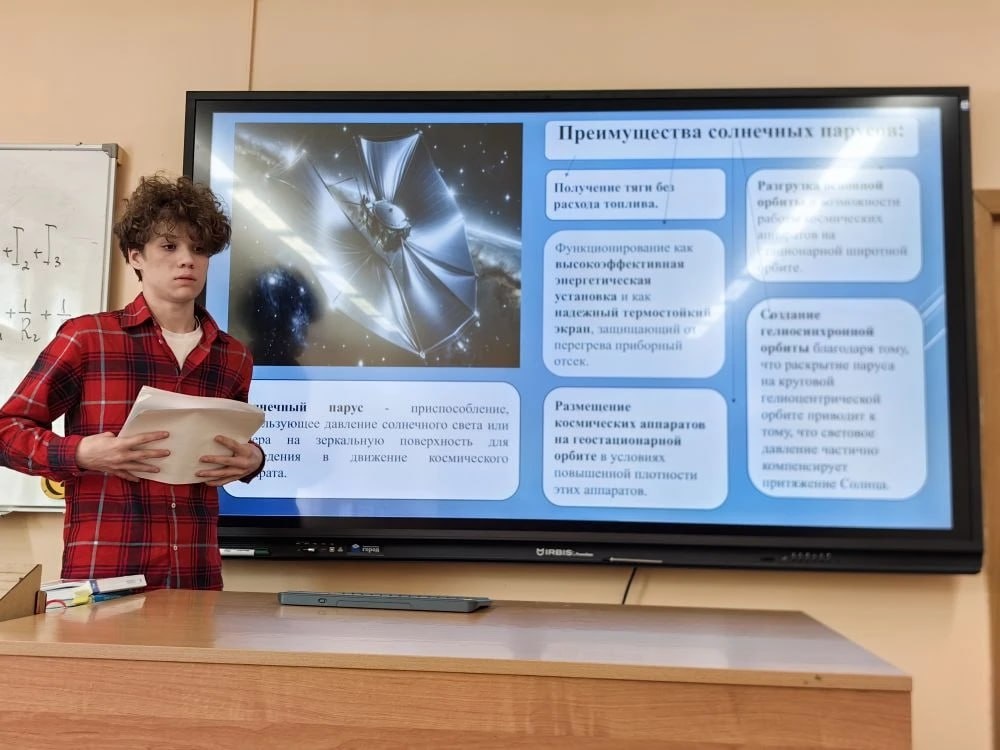 Декада науки в школе 1358 Название «физика» происходит от древнегреческого слова «φύσις» («фюсис»), что означает «природа». И физика соответственно - это наука о природе, изучающая фундаментальные и простейшие явления, и сосредоточена она на ответах на вопросы: из чего состоит материя, каким образом частицы материи взаимодействуют между собой, по каким правилам и законам осуществляется движение частиц. Казалось бы, наука максимально теоретическая, но именно она и максимально прикладная. Физике мы обязаны всем достижениям технического прогресса. Проект Ильи "Использование солнечного паруса для движения космических аппаратов" решал следующие задачи: - изучение истории зарождения и развития идеи применения солнечных парусов в космоплавании; - определение истоков возникновения понятия солнечный парус; - установление принципа действия солнечного паруса, материалы, необходимые для его конструирования, - выявление задач, стоящих перед современными исследователями данной технологии; - определе