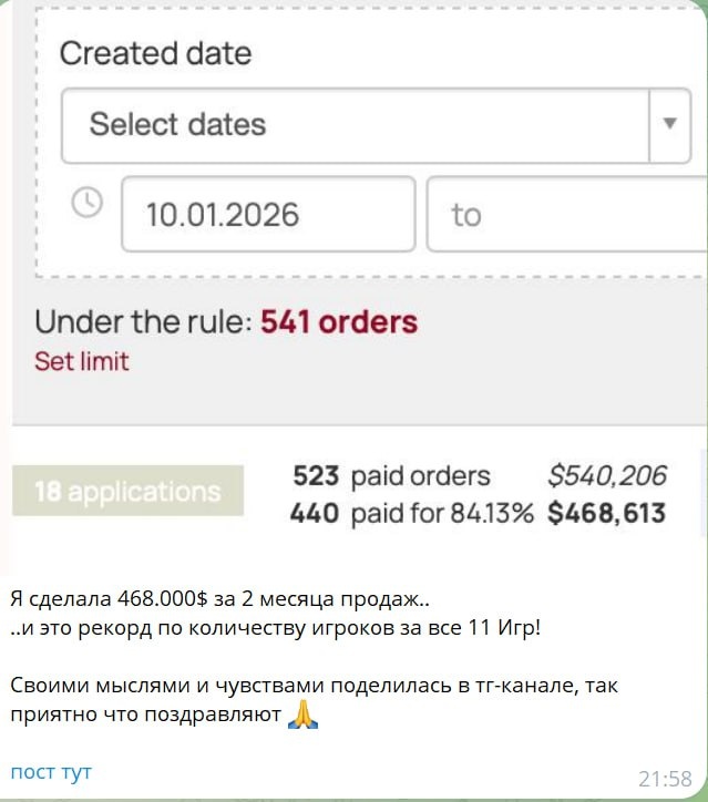 ❤️ Работа кипит полный ходом, я тружусь над своим новым проектом. Хочется сделать его максимально полезным и при этом простым и понятным. Подробности появятся, как только все будет готово для выхода в Мир💫 А пока хочу поделиться с вами вот таким скрином - это скрин моего наставника по воронкам в рилс! СУПЕР результат💰 и главное это сделано из любви к своему делу, своему продукту❤️ Так что я тружусь в поте лица и на благо Отчизне. А как вы думаете, можно ли сделать такие продажи из ЛЮБВИ?!
