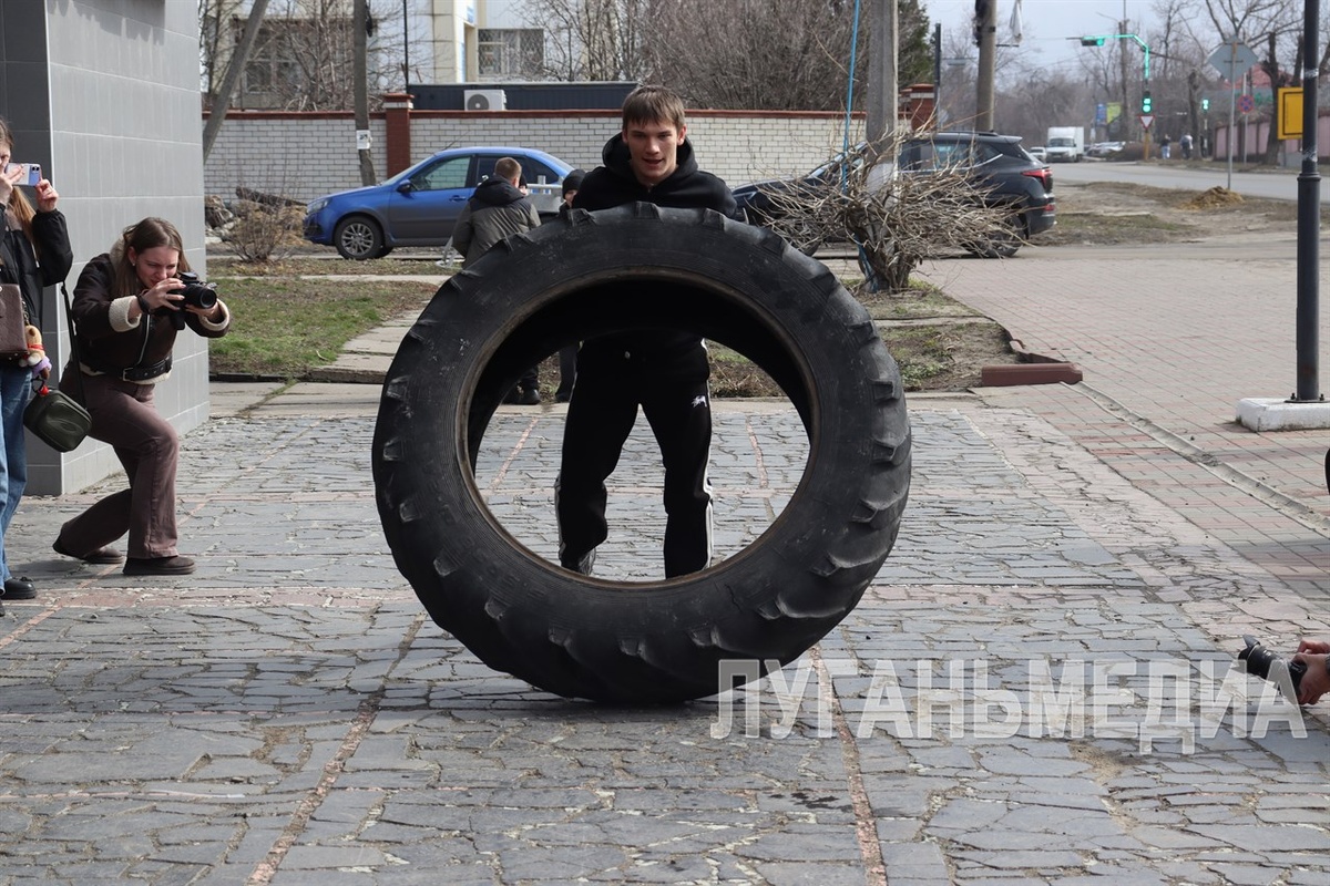 В Свердловске перед зданием Дворца культуры имени Свердлова прошел муниципальный отборочный этап «Богатырских игр». К участию в соревнованиях были допущены все желающие в возрасте от 14 до 35 лет. Участников «Богатырских игр» и болельщиков приветствовала заместитель главы Администрации Свердловского муниципального округа Татьяна Мирошникова. Она поблагодарила свердловчан, пришедших померяться силами, за активную жизненную позицию, целеустремленность и смелость, а еще пожелала успехов и побед. Специалист по работе с молодежью Дома молодежи ЛНР Анастасия Харитонова рассказала, что Свердловский муниципалитет – третий, в котором проходят состязания такого формата. – Победители примут участие в «Битве титанов», где встретятся сильнейшие богатыри со всей республики, – добавила она. Предварительную разминку с участниками «Богатырских игр» провел руководитель делегации Красноярского края в Свердловском муниципалитете Игорь Мирошников. Он же продемонстрировал свое мастерство в перетягивании гру