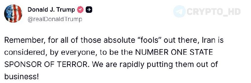 🇺🇸🇮🇷 Дональд Трамп: Напоминание для всех абсолютных «глупцов» — Иран считается главным государством-спонсором терроризма в мире. Мы стремительно лишаем их возможностей действовать!
