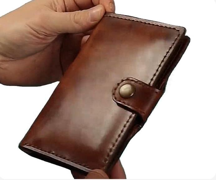Урок по созданию стильного и функционального портмоне своими руками. В результате получится простая, но удобная модель с тремя карманами для карт, отделением для паспорта, местом для водительского удостоверения и отделением для купюр. Портмоне будет застегиваться на кнопку. Процесс изготовления требует внимательности и аккуратности, но благодаря поэтапному описанию шагов это не доставит проблем. Для работы потребуются следующие инструменты и материалы: После распечатки выкройки необходимо проверить контрольный прямоугольник — его размеры должны быть 50 на 40 мм. Если размеры совпали, можно приступать к вырезанию деталей с небольшим отступом от контура. На выкройке есть две детали с кружком и стрелочками. Одну из них нужно вырезать ровно по линии, а вторую — с небольшим отступом. Детали совмещаются по кружочкам и фиксируются скотчем. Остальные детали вырезаются с отступом от контура. Вырезанные детали наклеиваются на кожу с помощью скотча. Для работы потребуется кусок кожи размером п