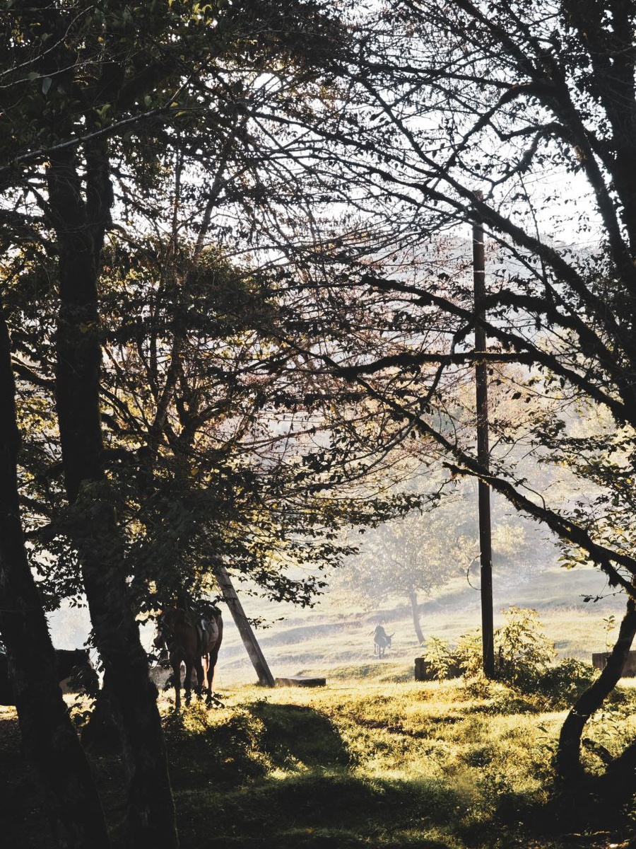 Через 15 минут пути тропа выводит к деревянному мосту над бурлящим ручьём. Внизу вода падает с маленьких водопадов, образуя мини-заводи и плёсы с кристально чистой водой. Ты наклоняешься и касаешься холодной воды — брызги мгновенно освежают лицо.