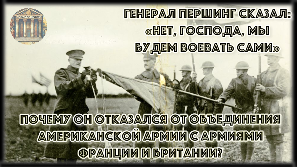 Першинг же – человек с огромным самомнением и чётким пониманием, что если он сейчас уступит, Америка навсегда останется младшим партнёром в этой коалиции. Её солдаты будут воевать под чужими знамёнами, и никто в мире не узнает, что это американцы тоже выиграли войну. А значит, и в послевоенном мире США будут иметь вес где-то на уровне Бельгии. Допустить этого, он, конечно же, не мог.
