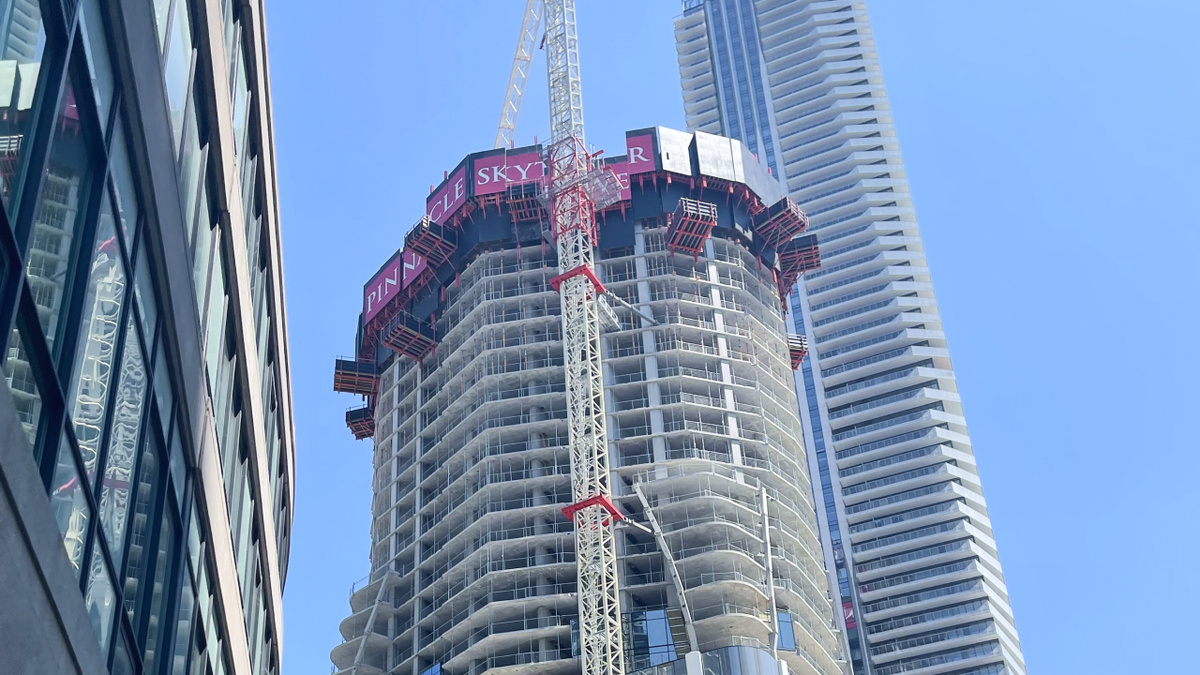В Канаде появился новый рекордсмен — строящийся в Торонто небоскреб Pinnacle SkyTower достиг 106 этажей, что стало абсолютным рекордом по их количеству среди всех жилых зданий Северной Америки. 351-метровая башня возводимая компанией Pinnacle International по проекту архитектурного бюро Hariri Pontarini Architects, уже носит звание самого высокого здания Канады, пишет New Atlas. Двенадцатигранная башня, сужающаяся кверху, украшена ромбовидными элементами, которые перекликаются с окружающей застройкой. Как пояснила Джоди Бак из Hariri Pontarini Architects, отказ от традиционной прямоугольной формы позволил создать более изящный силуэт и обеспечить панорамные виды во всех направлениях. Граненая геометрия выполняет и практическую функцию: она помогает рассеивать ветровые потоки, огибающие здание. Сейчас, когда строительство вышло на максимальную высоту, продолжается внешняя и внутренняя отделка. В 106-этажной башне разместятся 958 элитных квартир, отель Le Méridien Toronto Pinnacle на 220