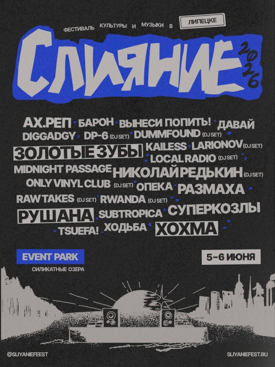 🎤 – Ах.Реп, Барон, вынеси попить!, Давай, Diggadgy, Золотые зубы, Kailess, Midnight Passage, Опека, Размаха, Рушана, Subtropica, Суперкозлы, tsuefa!, Ходьба, Хохма (лайн-ап будет пополняться) 📍 – «Event Park», Липецк, Силикатные озёра 🗓 – 5 июня – 6 июня 💵 – от 2 200 руб. 🔗 – билеты (16+) #концерты #билетынаконцерт #фестиваль #слияние #липецк #силикатныеозера #ахреп #барон #вынесипопить #давай #diggadgy #золотыезубы #kailess #midnightpassage #опека #размаха #рушана #subtropica #суперкозлы #tsuefa #ходьба #хохма 👉 Список концертов: март • апрель • май @est_prohodka