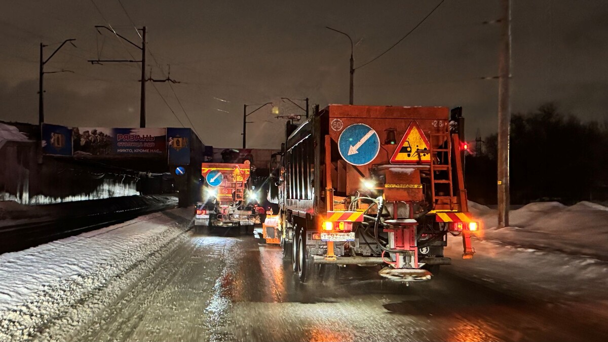 В один из последних снегопадов этой зимы (не календарной) редакция РЗН. инфо встретилась с работниками фирмы, которая занимается обслуживанием участка дороги от ТРЦ «Марко Молл» (Московское шоссе) через проезд Шабулина до Северной окружной в Рязани.