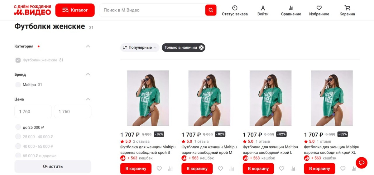 На площадке, как и ожидалось, появилась новая категория товаров — одежда и аксессуары. Компания ранее сообщала о намерении сфокусироваться на развитии мультикатегорийности. Сейчас в новой категории представлены мужская и женская одежда и аксессуары. В некоторых разделах буквально одна-две позиции — очевидно, масштабировать будут по мере прихода продавцов. На фоне уверенного роста fashion-разделов на других площадках, шансы на успех довольно высокие. Также в ближайшем будущем на площадке должны заработать категории «Продукты», «Здоровье» и «Красота». Продавцы, что думаете, взлетит М.Видео под новым чутким руководством? ✅ MPGO в Мах