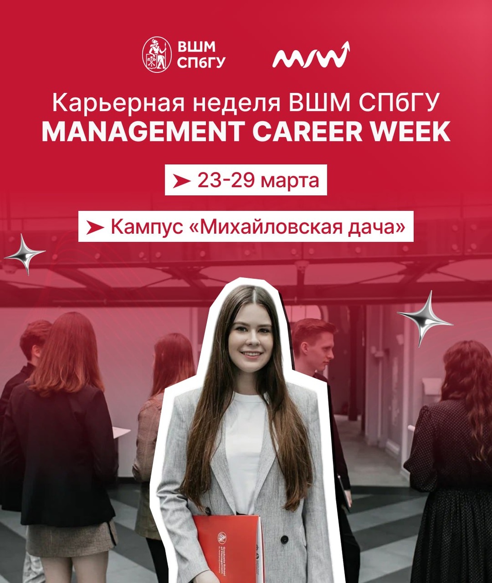 событие для всех студентов, которые хотят лучше понять карьерные возможности и познакомиться с ведущими компаниями. Но менеджмент — это не только про корпорации. На MCW мы покажем, насколько разнообразной может быть карьера менеджера. В программе недели: ➡ Разговоры с менеджерами современных артистов voskresenskii, nkeeei и Zoloto ➡ Встреча с Председателем Совета директоров Петродворцового часового завода «Ракета» — Дэвидом Хендерсон-Стюартом ➡ Диалог с основателями локальных брендов Петербурга: ARNY PRAHT, Asiknova Ceramics, ACLE и «Время Перемен» 🔗 Регистрируйтесь на мероприятия по ссылке. 👩 Подписывайтесь на нас в ВК и MAX!