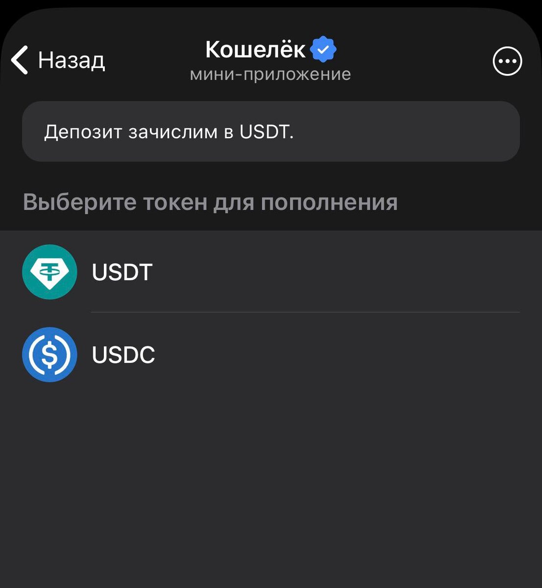 🤑 В Телеграм Кошельке добавили пополнение через USDC