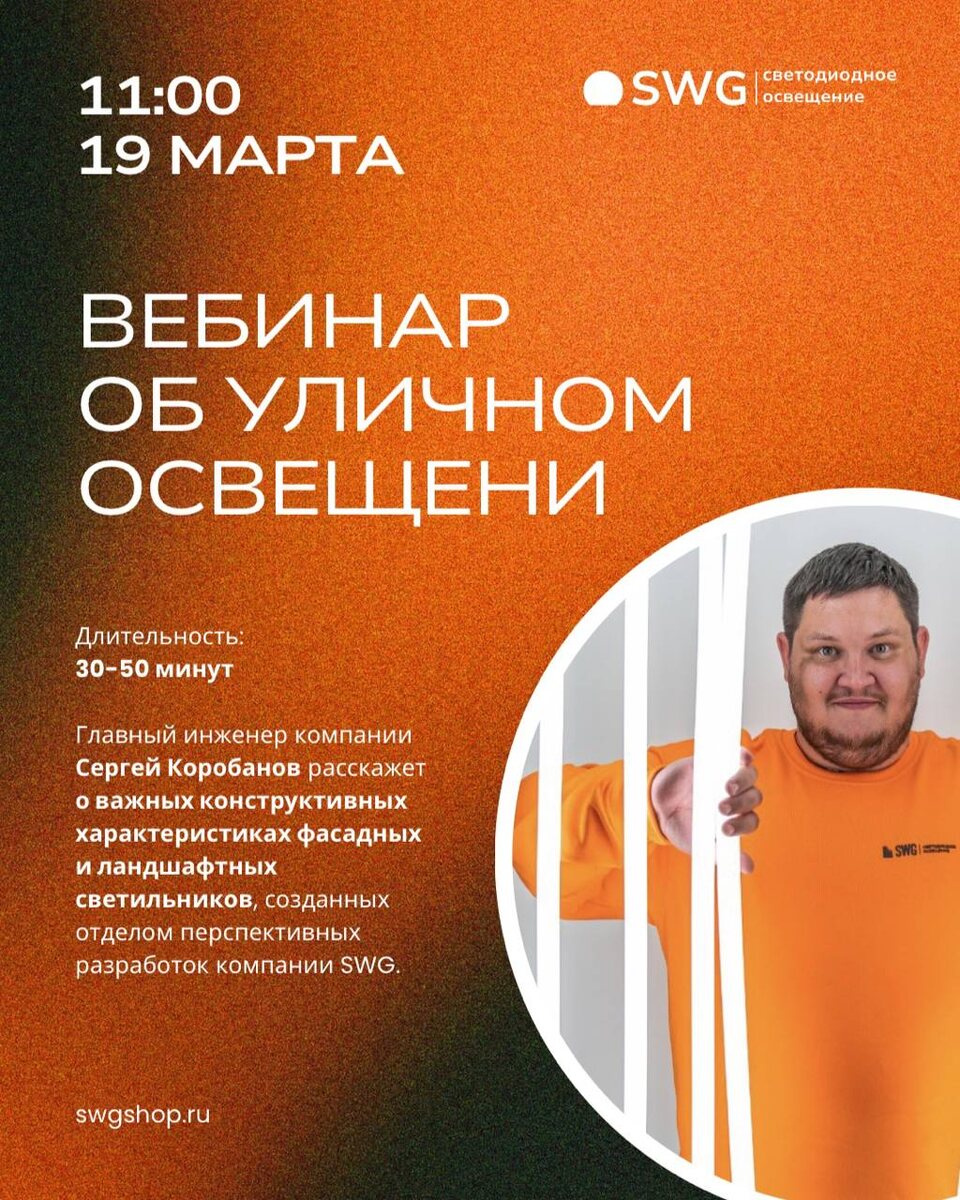 🕚 19 марта в 11:00 Длительность: 30-50 минут. Это не продающий вебинар! Главный инженер компании Сергей Коробанов расскажет о важных конструктивных характеристиках ландшафтных и фасадных светильников, созданных отделом перспективных разработок компании SWG. У вас будет возможность получить ответы на ваши вопросы в режиме реального времени🙌🏻 Ссылка на вебинар: https://pruffme.com/landing/u1406265/tmp1773733321 После вебинара по этой же ссылке найдете запись👆 Презентацию вебинара найдете в комментариях.