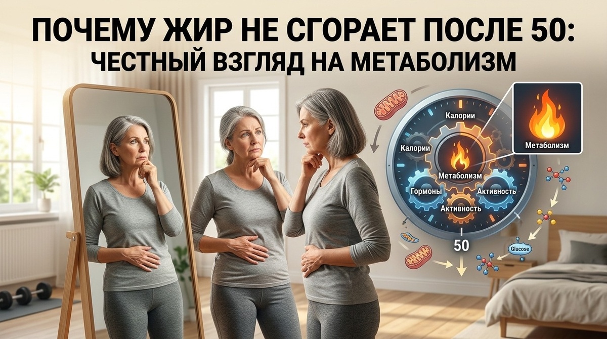 В молодости мы могли съесть торт на ночь, а утром проснуться с плоским животом и отличным аппетитом. После 50 лет даже от невинного взгляда на булочку предательски растет талия. Наука объясняет эту возрастную несправедливость потерей метаболической гибкости. Что такое метаболическая гибкость? Представьте современный гибридный автомобиль, который умно переключается с бензина на электричество. Наш организм в норме работает точно так же. Он должен уметь быстро сжигать глюкозу после еды и плавно переключаться на жировые запасы в перерывах. Эта уникальная способность менять «топливо» и называется метаболической гибкостью. У здорового человека этот внутренний тумблер щелкает мгновенно и без сбоев. Вы проголодались — тело сразу открыло жировые депо и взяло нужную энергию для жизни. Почему ломается тумблер жиросжигания? С возрастом наши клетки становятся глухими к инсулину. Это главный гормон-грузчик, который старательно разносит полученную из еды глюкозу по всем тканям. Возникает опасное сост
