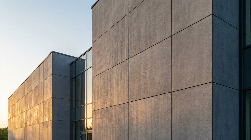 Сегодня стандартом для сложных фасадов стал стеклофибробетон (СФБ) — архитектурный бетон, армированный щелочестойким стекловолокном. Прочность СФБ на изгиб достигает 25 МПа, что в 5 раз выше обычного бетона.