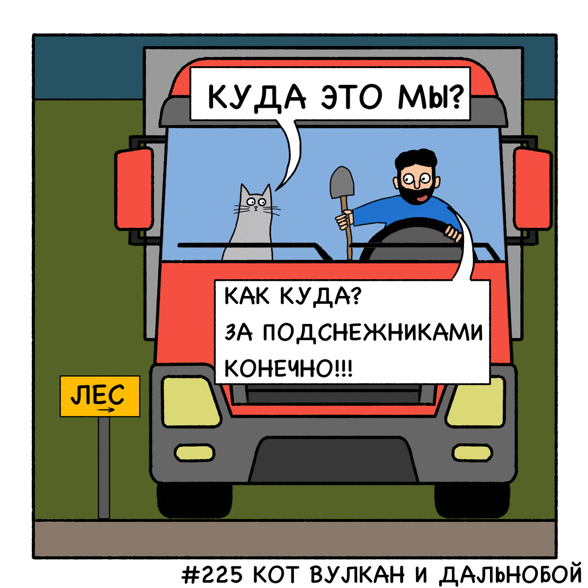 Сегодня, в новом выпуске комикса, Кот Вулкан и дальнобой познакомятся с новыми животными и растениями в весеннем лесу! Некоторые из них даже находятся под охраной в красной книге!