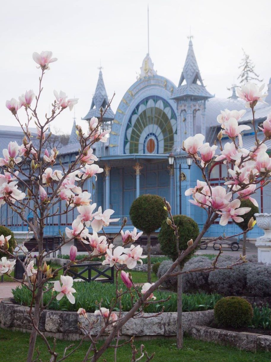 🌸 Цветение магнолии в Пятигорске. Главная точка притяжения — парк «Цветник» на Проспекте Кирова. Здесь в 2024 году высадили 8 магнолий. Цветущие деревья можно увидеть также у Лермонтовской галереи, рядом с сувенирной лавкой и фонтаном ⛲️ 🌿 Юг Край в соцсетях: Телеграм, МАХ, ВКонтакте, Дзен