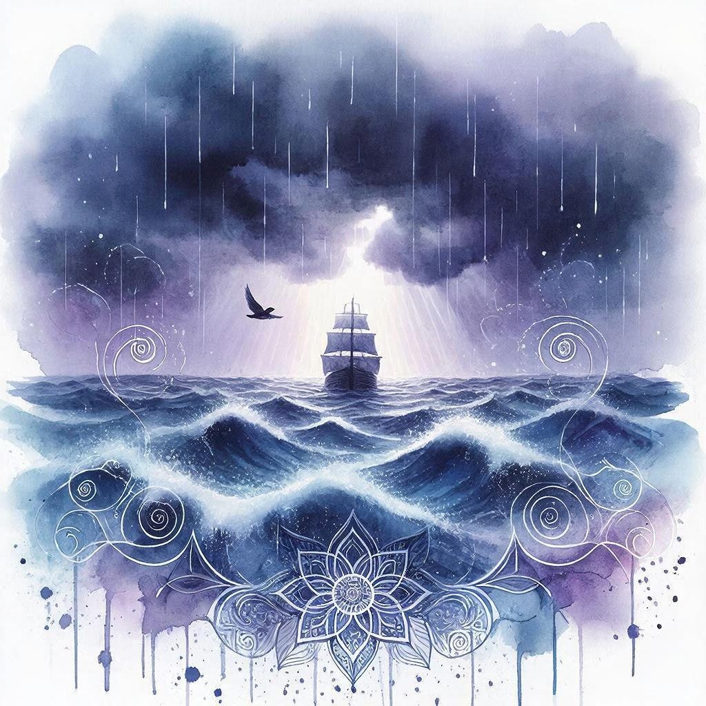 Можно сравнить океан с этой пучиной и почти энтропией накопленных мировых знаний. Но иногда с океаном сравнивают и весь наш материальный мир... Я не помню, где именно 9 лет назад я нашёл это стихотворение одного современного вайшнавского писателя и учителя, Шачинанданы Свами, но как-то оно мне запало тогда и вдохновило сделать вот такой вот его перевод с английского: СПАСЕНИЕ В БУШУЮЩЕЙ ПУЧИНЕ Я подобен птичке малой в небесах, где шторм бушует, бьюсь, лечу над океаном, что рычит подобно зверю. Где искать мне здесь защиты? Разве что за сенью мачты корабля большого скрыто место то - ему доверюсь. А иначе мне не выжить: линий берега не видно, тучи чернотою дышат, и не прекращают ливни. Где искать защиты, грота, мой Господь, прошу, ответь мне? Стоп Твоих святейший лотос - всем прибежище на свете. Шачинандана Свами (вдохновлено стихотворением Царя Кулашекхара) перевод от 15.02.2017 Поэма, или ода "Мукунда-мала-стотра" тамильского средневекового царя Кулашекхары - это своеобразные ва