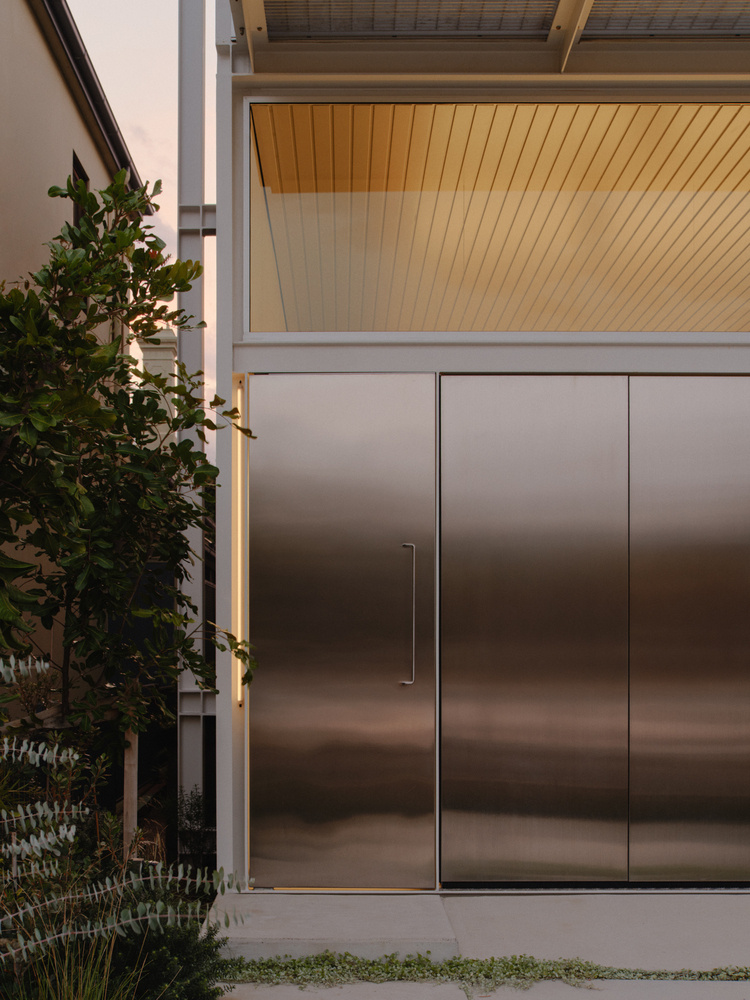 Bondi House — редкий случай, когда архитектура не прячется за видами, а создаёт свои. Здесь главный пейзаж не снаружи, а внутри: то, как свет проходит сквозь поликарбонат, как тени от жалюзи ложатся на пол, как металл теплеет в лучах заката. В районе, где каждый метр на счету, Ник Кент доказал: узкий участок — не приговор, а повод собрать дом из чистых материалов и воздуха.