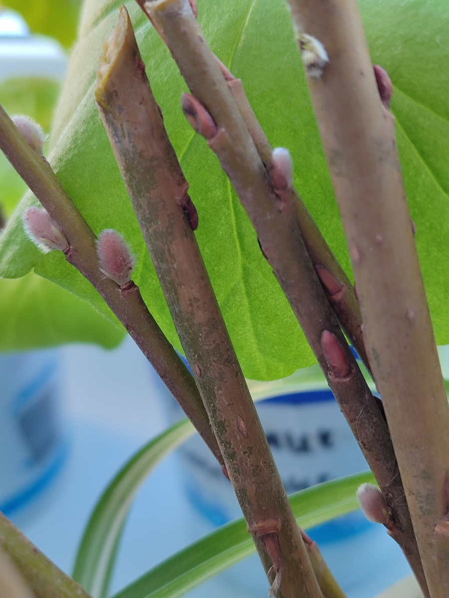 В делах садовых случилось вот что: я начеренковала иву Шверина и иву пурпурную Пендулу. Чудесные ивы, любимые мои деревья садовые… Выбрала крепкие однолетние ветки, нарезала черенки длиной около 20 см — с пятью‑шестью почками на каждом. Шверина уже с почками! Когда успела)) Мохнатые капельки весны! Такая прелесть!