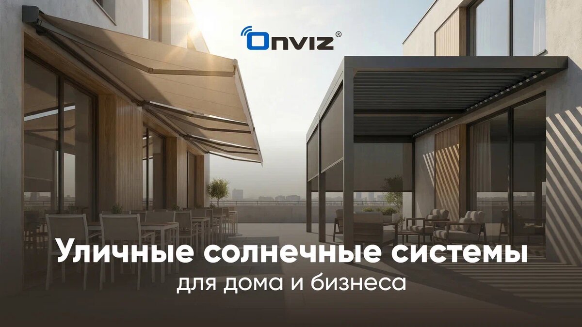 Когда мы говорим про умный дом и защиту от солнца, большинство сразу представляет электрокарнизы для штор внутри квартиры. Но что, если я скажу, что комфорт может начинаться уже во дворе? Onviz давно вышел за пределы окон. У компании есть целая линейка уличных солнцезащитных систем, которые превращают террасу, веранду или летнее кафе в идеальное место для отдыха даже в полдень . Представьте: на террасе жарко, солнце печёт нещадно. Вы говорите «Алиса, закрой перголу» — и конструкция плавно создаёт тень. Надоело — открываете обратно. Перголы Onviz с электроприводом — это идеальное решение для: Они изготавливаются из усиленного алюминиевого профиля, комплектуются бесшумным двигателем и могут устанавливаться как горизонтально, так и под углом — например, для мансардных окон или скатных крыш . Кассетные маркизы Onviz раздвигают полотно в горизонтальной плоскости, под наклоном и защищают не только от солнца, но и от дождя. Это отличное решение для открытых участков, где хочется уюта в любу