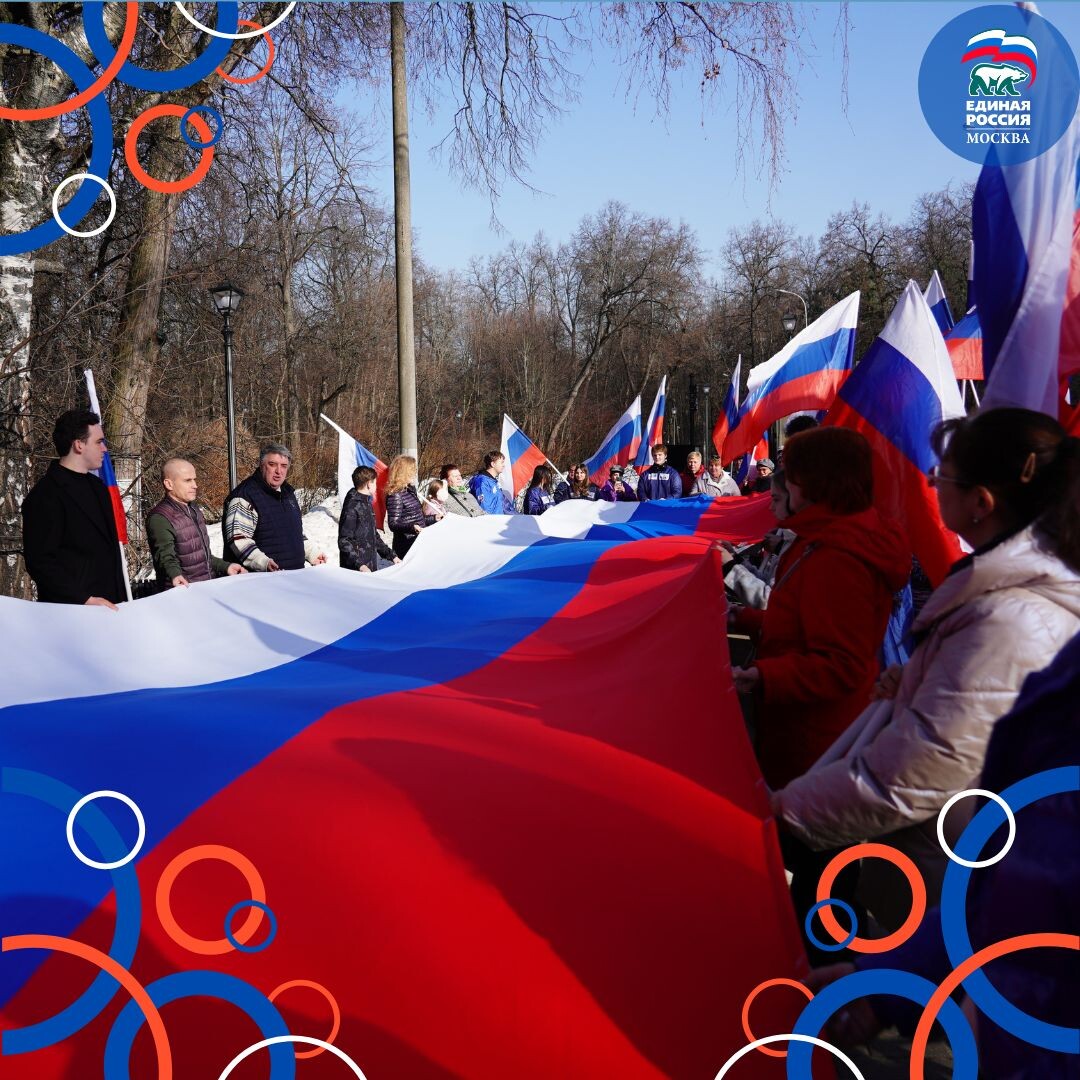 Она прошла в столичном парке «Фили» и объединила молодогвардейцев, школьников и жителей района Филёвский Парк. Депутат отметил искреннюю вовлеченность молодежи. «Статус городов-побратимов связывал Москву и Севастополь долгие годы. Теперь, когда легендарный город русской славы навсегда воссоединился с Родиной, мы видим над ним гордый триколор и Андреевский флаг. Вклад столицы в восстановление исторической справедливости и поддержку севастопольцев нельзя переоценить. Очень рад, что молодогвардейцы Филёвского Парка с энтузиазмом подошли к проведению акции. Такие живые мероприятия показывают: молодежь у нас с правильными ценностными ориентирами», — подчеркнул Евгений Попов. Центральным событием акции стало развертывание 15-метрового триколора, в котором приняли участие порядка 150 человек. Таким образом участники выразили единство с жителями полуострова и поддержку исторического выбора, сделанного крымчанами в марте 2014 года. «Такие акции помогают сохранять историческую память, формироват