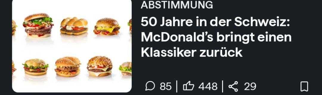 Первый ресторан открылся 4 ноября 1976 года в Genf — тогда в меню было всего восемь позиций. Глава McDonald’s Schweiz Lara Skripitsky рассказала о текущем положении и планах компании. Бизнес в Швейцарии Сейчас у сети около 190 ресторанов в стране. В прошлом году открылись новые точки, и расширение продолжается — уже строятся рестораны в новых городах. Новинки Планируется расширение ассортимента: больше блюд с курицей и говядиной меню с международным уклоном вегетарианские наггетсы, популярные за границей, пока не планируются Любимый бургер Уже 50 лет самым популярным остаётся Big Mac. Юбилей К 50-летию компания вернёт один из старых швейцарских бургеров — его выберут пользователи через приложение. Среди вариантов: McRösti, McTicino, McZüriGschnetzeltes и другие. Вернётся ли он в меню навсегда — пока неизвестно. Интересные факты В 90-е годы у компании были необычные проекты: поезд McTrain совместно с SBB самолёт McPlane даже отели McHotel Цены За 50 лет цены заметно в