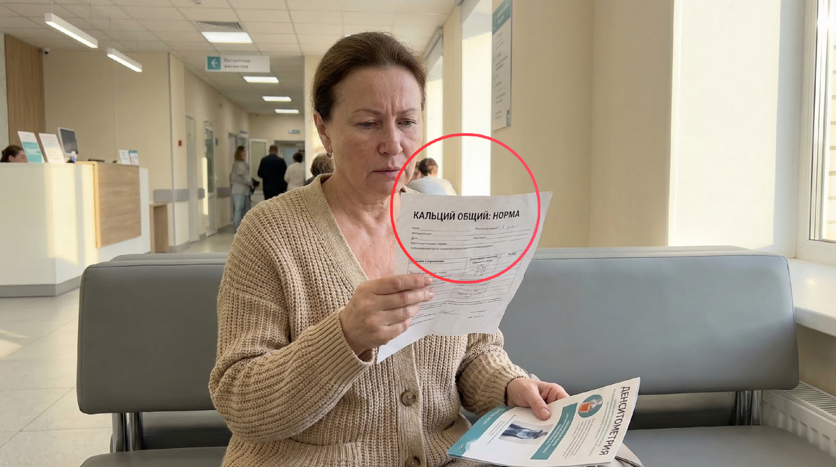 Недавно ко мне на прием заглянула пациентка. Назовем её Елена. Ей 52, она бодра, следит за собой и раз в год честно сдает анализы. Пришла, что называется, "для очистки совести", потому что в её медицинской карте по строчке "кальций" всегда стоял идеальный порядок. - Доктор, у меня всё под контролем, - говорила она. - Ногти крепкие, спина прямая. Зачем мне эта ваша диагностика? Я только кивнула. Через 20 минут Елена вышла из кабинета обследования с другим лицом. На листке с результатом Т-критерий показывал, что её скелет теряет плотность гораздо быстрее, чем она думала. Почему так вышло? Давайте разберем этот парадокс по пунктам. По-честному и по-человечески. Мы привыкли: если в крови кальция хватает, считай, всё хорошо. На деле это - самое популярное заблуждение. Кстати, врачи часто сталкиваются с этим мифом. Кровь - это главная транспортная система нашего тела. Кальций ей нужен каждую секунду, чтобы ваше сердце билось, а мышцы работали. Если в рационе его не хватает, организм включает
