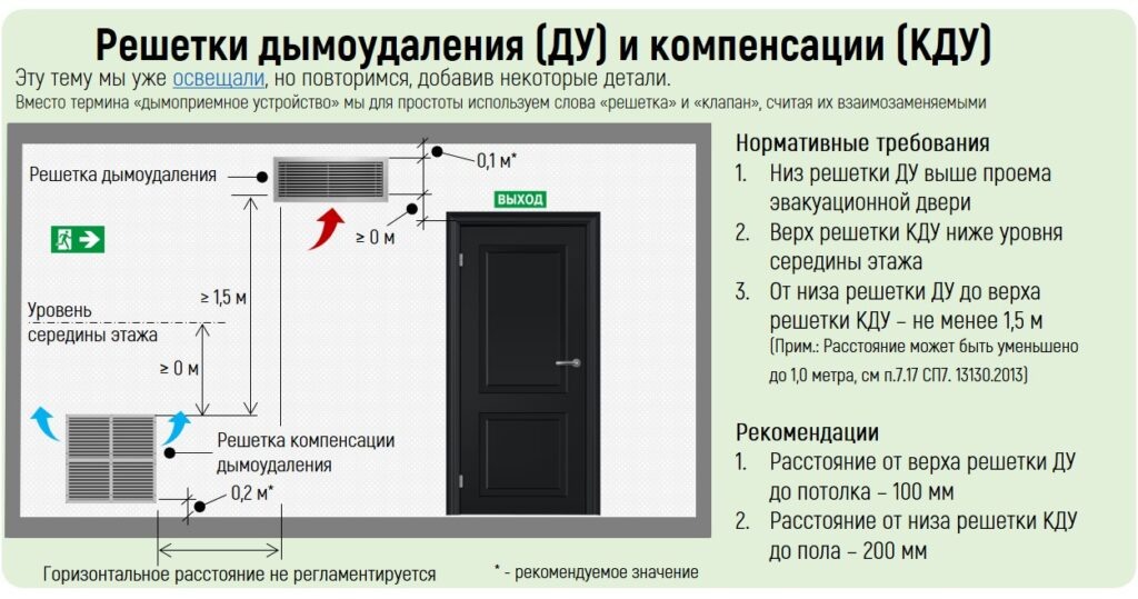 Эту тему мы уже освещали, но повторимся, добавив некоторые детали. Вместо термина «дымоприемное устройство» мы для простоты используем слова «решетка» и «клапан», считая их взаимозаменяемыми.