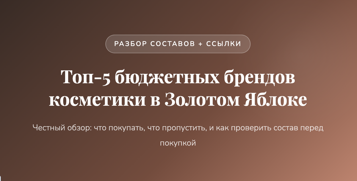 Золотое Яблоко — магазин, в котором легко потратить 5 000 рублей за 20 минут. Но там же можно собрать полноценный уход и макияж за 1 500–2 000 ₽, если знать, куда смотреть. Я отобрала пять брендов, которые дают реальный результат без переплаты — и разобрала составы.