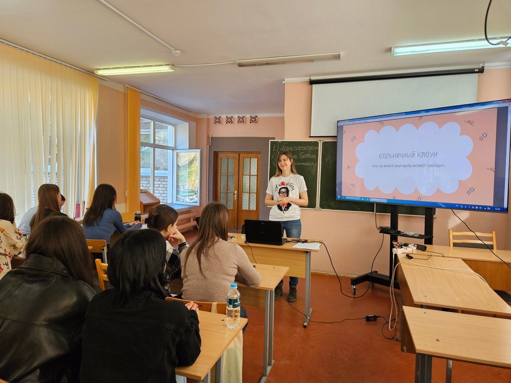 📍В рамках реализации проекта «Психологическая мастерская» СНИЛ «Альянс» состоялась необычная интерактивная встреча. 🤡 Ольга Гринь, Александр Давыдов (выпускники факультета психологии и педагогики) и клоунесса Фасолька не просто рассказали о специфике работы в медицинских учреждениях, а погрузили участников в атмосферу клоунотерапии. ✨ Будущие психологи узнали, как с помощью юмора, импровизации и телесных практик можно устанавливать контакт с тяжелобольными детьми, выстраивать с ними доверительные отношения, снижать уровень боли и страха у маленьких пациентов. «Было удивительно наблюдать, как простые клоунские приемы помогают растопить лед в общении и создать ситуацию безопасности. Это бесценный опыт для нашей будущей практики», – поделились впечатлениями участники встречи. 🖇 Организаторы мероприятия планируют продолжить знакомство студентов с альтернативными методами психологической помощи и приглашают присоединиться к благотворительной деятельности.