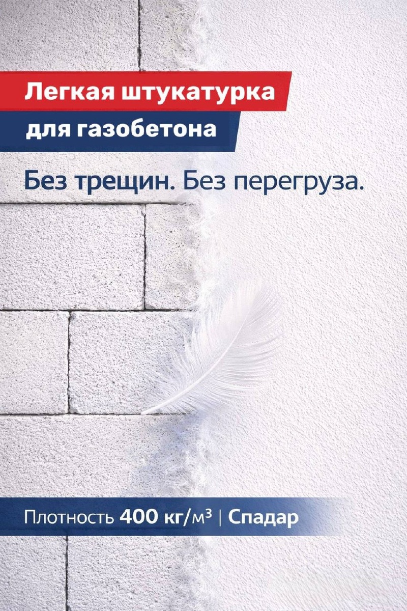 ? 🧱 Когда работаешь с газобетоном, пенобетоном или СИП-панелями, выбор штукатурки - задача не из легких. Эти материалы не такие прочные, как традиционный кирпич, и требуют особого подхода. Если выбрать тяжелую штукатурку, можно столкнуться с трещинами, деформациями и другими неприятностями ⚠ Что же делать? Решение простое - выбирать легкие штукатурки, такие как Спадар. Почему именно этот материал лучший выбор? Давайте разбираться 👇 Для таких материалов, как газобетон и пенобетон, ключевым фактором является низкая плотность штукатурки Спадар имеет насыпную плотность всего 400 кг/м³, в то время как обычные штукатурки часто весят в два-три раза больше. Это означает, что она не нагрузит ваш фасад, а значит, и трещин не будет ✅ Кроме того, Спадар идеально работает с материалами, как газобетон и СИП, потому что его модуль упругости и термическое расширение совпадают с этими материалами 🔎 Результат? Никаких трещин, деформаций или проблем с теплоизоляцией 🙌 А еще штукатурка «дышит» и за