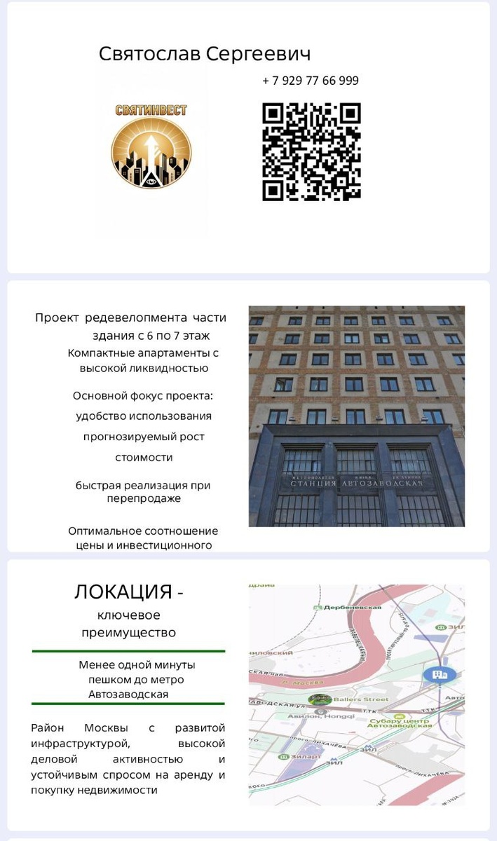Внимание. г.Москва Апартаменты в 2мин от метро Автозаводская От 15 до 40 метров. 310 000р за м² Возможность сдачи в аренду управляющей компании. Срочный выкуп Цены +-5 млн руб за апартамент у метро. Цена ниже всех возможных рынков. СРОЧНО... Бронь в личные сообщения. @MSvyatoslav #москва #аппарты #чудесаслучаются #срочно #метро