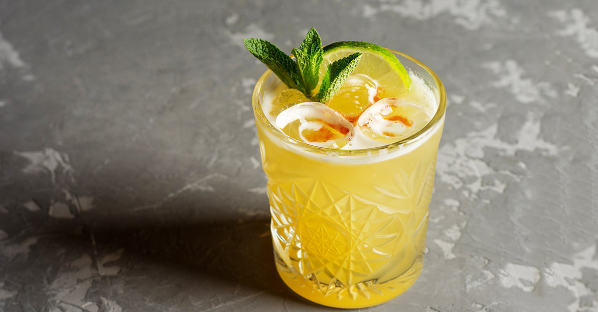 • соль и сахар для украшения Все ингредиенты смешайте в шейкере, сильно встряхните. Обмокните края бокала в лимонный сок, а затем в смесь сахара и лимона. Добавьте лёд. Налейте готовую маргариту. Украсьте лимоном и базиликом.