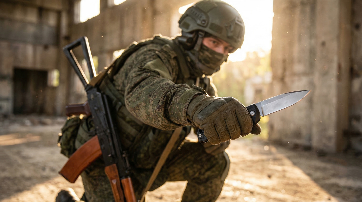 Это нож для тех, кто ценит скорость и четкую геометрию. Здесь АК вдохновил создателя не столько надежностью, сколько формой штыка — агрессивной и функциональной.
