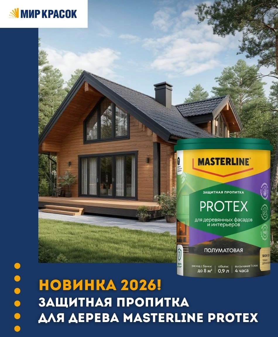 ! Первые тёплые дни, запах дерева, планы на террасу, забор, фасад… Весна — это всегда про обновление. И если вы уже мысленно на даче (или физически там 😄), самое время подумать о защите дерева. В «Мир Красок» как раз появилась новинка к сезону — пропитка для дерева Masterline Protex. И это тот случай, когда всё сошлось: надёжность, удобство и адекватная цена. Дерево — материал красивый, но чувствительный. Солнце, влага, перепады температур — всё это со временем влияет на его внешний вид. Masterline Protex создана как универсальное решение, чтобы сохранить эту красоту надолго. 🔹 Подходит для внутренних и наружных работ 🔹 На водной основе, без запаха — комфортно работать даже в закрытых пространствах 🔹 Обеспечивает до 7 лет защиты 🔹 Защищает от грибка и водорослей благодаря биоцидным добавкам 🔹 Отталкивает влагу и грязь 🔹 Устойчива к УФ — цвет не выгорает на солнце 🔹 Быстро сохнет — всего за 4 часа 🔹 5 готовых цветов + база для колеровки В составе — воск, который повышает п