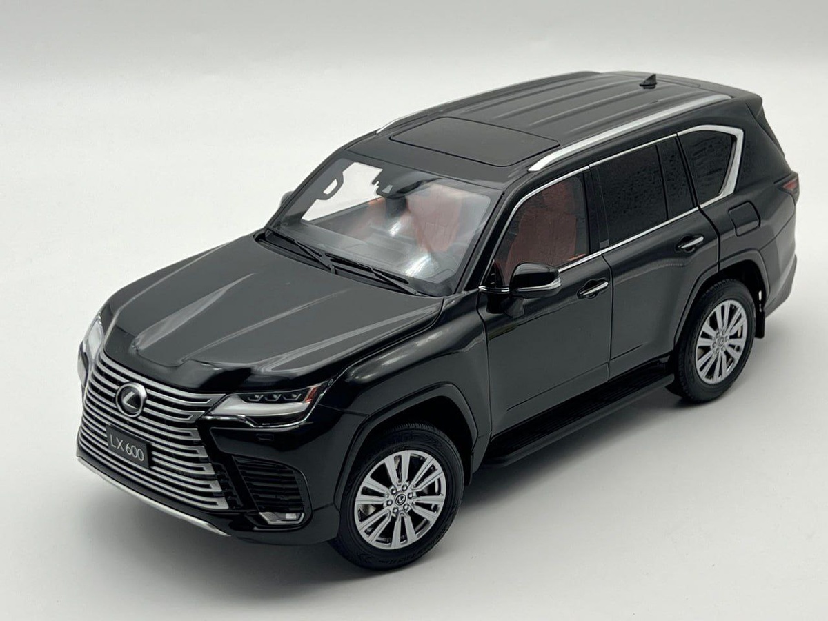 : LEXUS LX600 1:18 от LCD «Я люблю большие японские SUV в 1:18, и этот LX600 от LCD сразу зашёл. Внешность отразили на модели верно: новая решётка с глубокой перфорацией, секционные L‑образные фары. Отмечу эмблемы Lexus - реально, как настоящие. Но главное у LCD не внешний облик и его передача, а механика. Всё открывается: четыре двери, багажник, капот, лючок бака; люк приподнимается, зеркала складываются. Под пальцем подвеска пружинит - нажал, и кузов "дышит". Поворачиваешь руль - вместе с ним идут передние, а через кардан подтягиваются остальные колёса: хорошая демонстрация полного привода на полке. Салон аккуратный, особо отмечу - кнопки приборки и графика экранов читаются, подголовники . На шинах - на боковинах принты Dunlop. В комплект кладут отвёртку в цвет кузова с двумя битами - мелочь, а приятно. Упаковка предсказуемая: плотный пенопласт + "зубная паста" - коробка, доезжает без приключений. Из минусов - качество плавает от партии к партии. У некоторых экземпляров видел: -