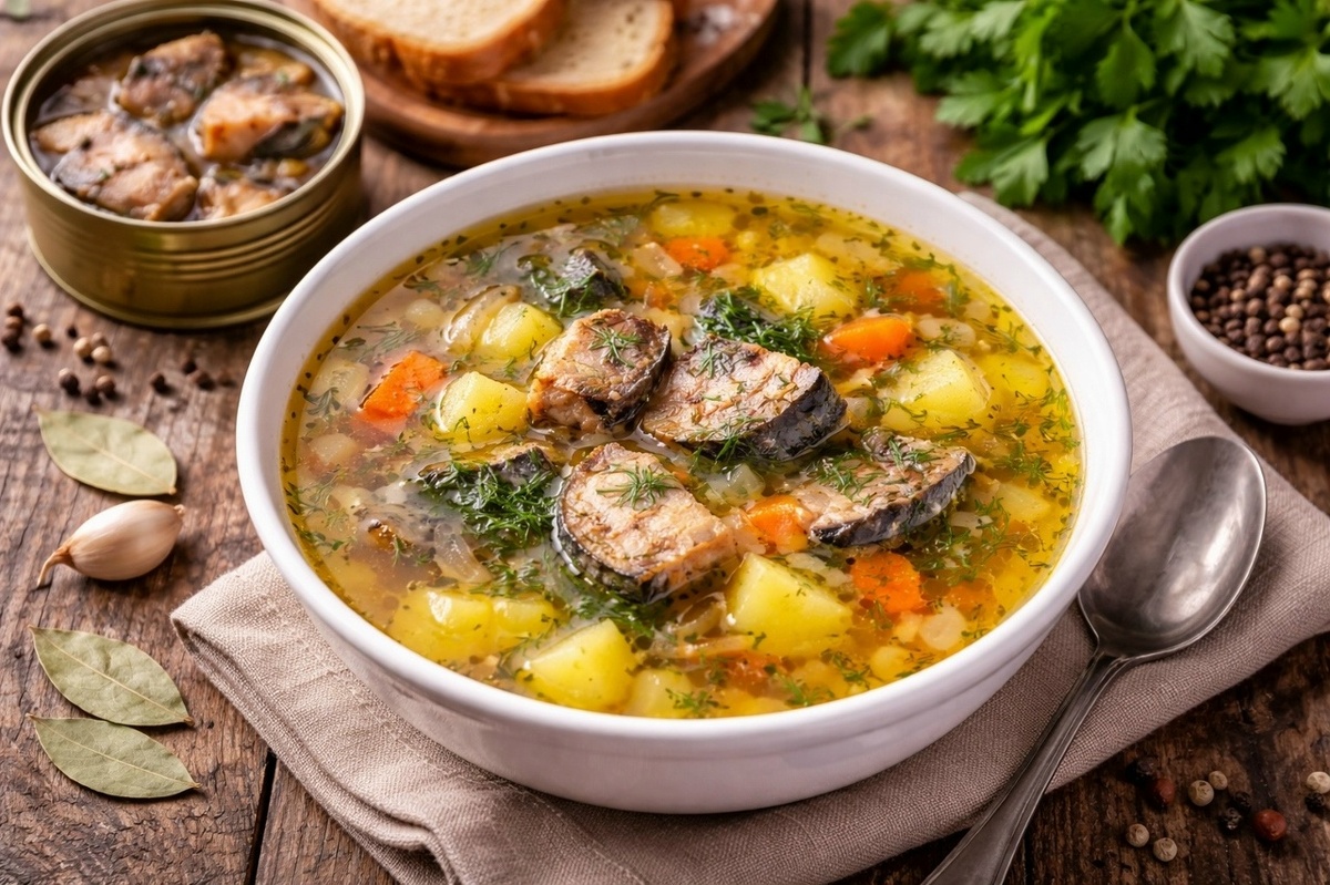 Друзья, всем привет! Сегодня у нас тот самый случай, когда не хочется долго стоять у плиты, а горячего нормального супа всё равно надо! И вот здесь на сцену выходит блюдо, которое многие почему-то недооценивают — это рыбный суп из консервов. Честно скажу, раньше и сам относился к нему скептически, пока не попробовал сделать нормально, без суеты и «на глаз». Оказалось, что это один из самых быстрых и при этом вкусных супов, который реально выручает. У многих есть ощущение, что консервы — это что-то «на крайний случай». Но если взять хорошую рыбу (сайра, скумбрия или горбуша), то бульон получается очень насыщенным. За счёт того, что рыба уже готова, она отдаёт вкус практически сразу. Не нужно варить часами, как мясо. Суп получается лёгким, но при этом сытным. И ещё один момент — такой суп не перегружает. После него нет тяжести, а ощущение, что поел нормально и с удовольствием. Берём простой набор продуктов, который обычно есть дома: • консервированная рыба (сайра или скумбрия) 1 банка •