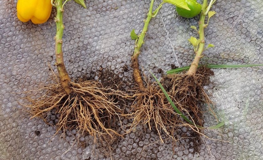 У перца принципиально другая корневая система, чем у томатов. Томаты после пересадки можно заглублять, обрывать нижние корни, и они только крепче станут. Перец устроен иначе. Его корни — нежные, хрупкие, с очень тонкими всасывающими волосками, которые легко повреждаются при малейшем вмешательстве. И если у томата на месте обломанных корней быстро вырастают новые, то перец впадает в стресс и замирает.