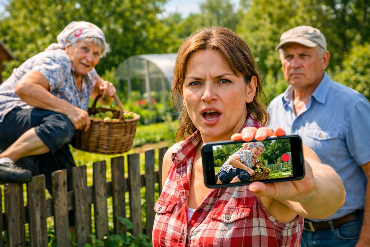 Она — с полной корзиной моего урожая и выражением лица, будто я ей мешаю.