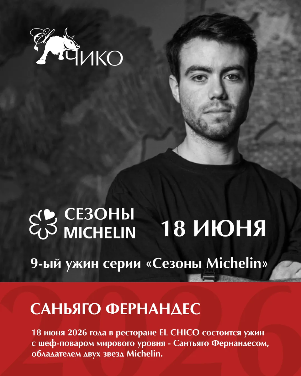 Проект «Сезоны Мишлен» продолжает гастрономические гастроли мировых шеф-поваров в Воронеже. Каждый ужин серии — это возможность прикоснуться к высокой кухне без перелётов и долгих путешествий. 18 июня 2026 года в ресторане Эль Чико состоится ужин с шеф-поваром мирового уровня — Сантьяго Фернандесом, обладателем двух звёзд Michelin. Сантьяго Фернандес — шеф ресторана MAZ (Токио, Япония), известного своей инновационной кухней и смелым соединением культур. Его гастрономическая философия строится на диалоге двух миров: богатейшей природы от Тихоокеанского побережья до тропических лесов Амазонки и утончённой японской гастрономической традиции. В его авторской кухне встречаются: • яркость вкусов • точность техники • современные гастрономические идеи Каждое блюдо Сантьяго Фернандеса — часть продуманной гастрономической истории, где важна каждая деталь: от продукта до подачи. Награды шефа Сантьяго Фернандеса: • 2 звезды Michelin — Michelin Guide 2024 • Innovation Award — Gault & Millau Japan