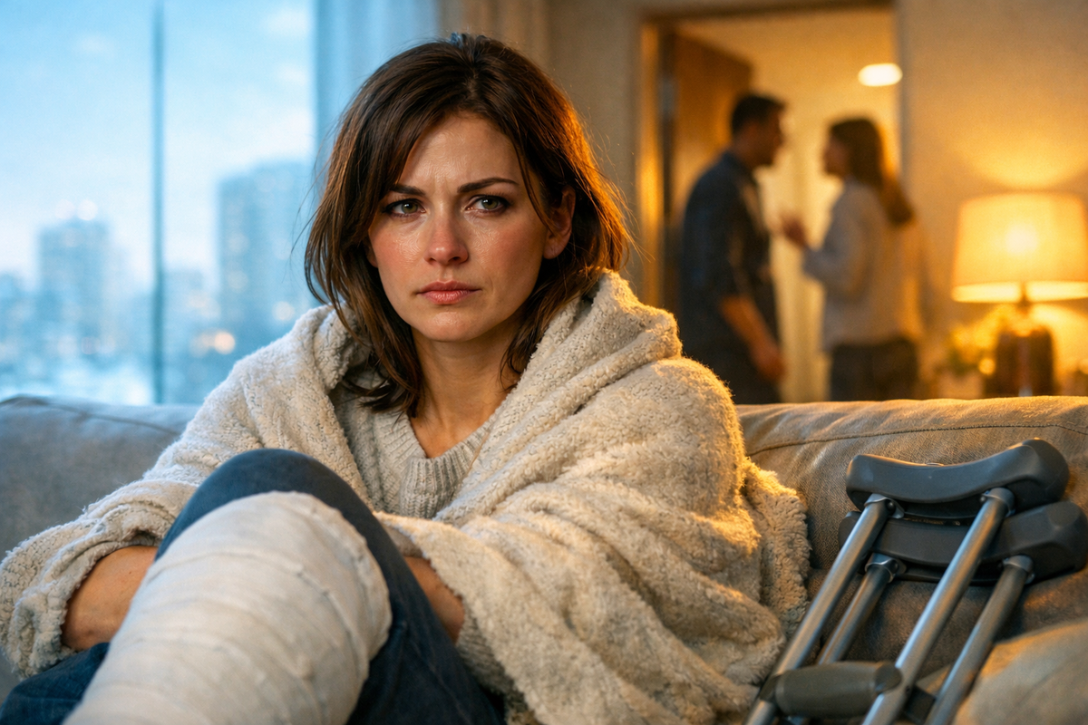 Я стояла в коридоре, опираясь на костыль, и наблюдала за этой сценой с ощущением, что попала в кино. В доме снова были звуки — шаги, шуршание пакетов, голоса. Джейсон подошёл ко мне и бережно забрал костыли.