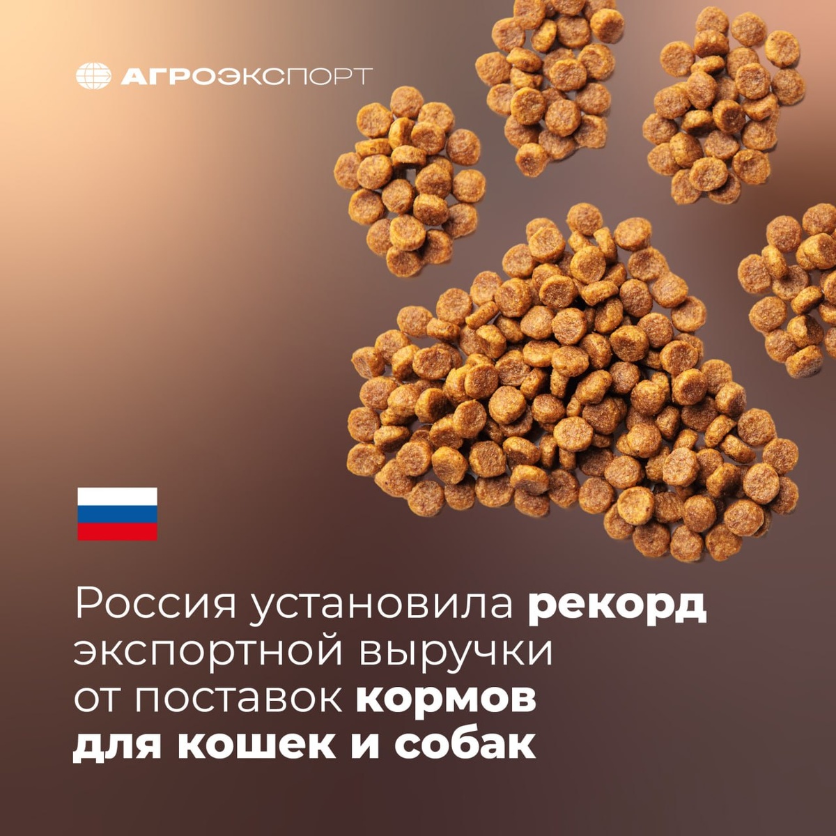 Согласно оценкам экспертов, в 2025 году Россия поставила на зарубежные рынки 106 тыс. тонн кормов для кошек и собак на 256 млн долл. США. В сравнении с 2024-м годом экспорт вырос на 23% в стоимостном выражении. Тем самым Россия обновила рекорд экспортной выручки за 2021 год — 227 млн долл. США. Абсолютным лидером среди импортеров является Республика Беларусь. Страна закупила из России около 54 тыс. тонн кормов для кошек и собак на почти 176 млн долл. США. Также в топ-5 стран-импортеров входят: 2-е место — Казахстан (48 млн долл. США) 3-е место — Узбекистан (более 9,4 млн долл. США) 4-е место — Кыргызстан (более 6,4 млн долл. США) 5-е место — Азербайджан (более 5,7 млн долл. США) Впервые за историю наблюдений в 2025 году Россия поставила корма для кошек и собак в Катар, Ирак, Иорданию и Бангладеш, а также возобновила экспорт в Гонконг (с 2021 года).