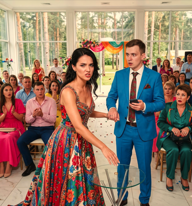 Лицо жениха сначала пошло пятнами, а затем резко побледнело. Он судорожно открыл рот, но не смог произнести ни звука. Вся его ложь вылезла наружу прямо на глазах у сотни гостей.