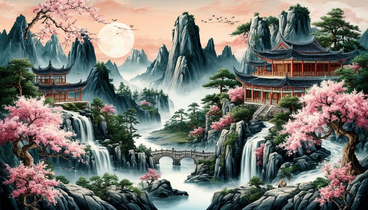 Говорят, что карта мира девяти богов напоминает распустившийся цветок сливы потому, что на заре времён этот мир был благословлён самими небесами. Цветы сливы символизируют небесное начало. Каждый из пяти лепестков-континентов означает тесную связь с силами пяти элементов: водой, землёй, деревом, огнём и металлом. Эти элементы не распределены равномерно, поскольку важны повсеместно, но слово «металл» у всех ассоциируется с империей А-Шуан. Здесь добывается железо, золото, олово и серебро. Изделия а-шуанских кузниц, литейных и мастерских имеют высшее качество и ценятся во всём мире. А сама империя занимает целый западный континент, включает в себя несколько королевств и тоже похожа на цветок, сердцем которого является Лунная Долина. Эта долина прекрасна и всегда открыта для ценителей изящных искусств. Каждый год на праздник середины лета сюда даже из самых отдалённых уголков приезжают художники, поэты и музыканты, чтобы продемонстрировать своё мастерство, оценить таланты других, набраться опыта или приобрести полезные связи. Праздник длится целых десять дней, но гостей подчас бывает так много, что Лунная Долина не способна вместить всех, поэтому некоторые мероприятия в последние годы проводятся за её пределами.