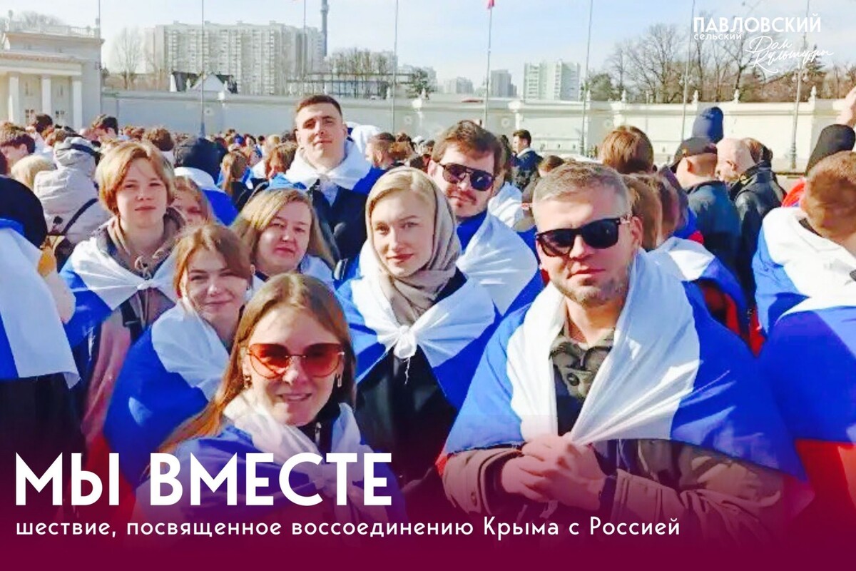 ✨ НОВОСТИ. Сегодня сотрудники «Павловского СДК, активисты «Молодой Гвардии Единой России» и «Волонтерской Роты Боевого Братства» совместно с известными уроженцами Крымского полуострова приняли участие в торжественном шествие, посвященном Дню воссоединения Крыма и Севастополя с Россией в Москве. 📆 18.03.2026 🏢 Павловский сельский дом культуры (СДК) 📍 г.о.Домодедово, дер.Павловское, ул.Вокзальная, д.18 ✅ Мероприятия Домодедово https://dzen.ru/id/66f10385cc4c5a16f7b5fb02 https://vk.ru/domodedovo_events http://dzen.ru/domodedovo_events