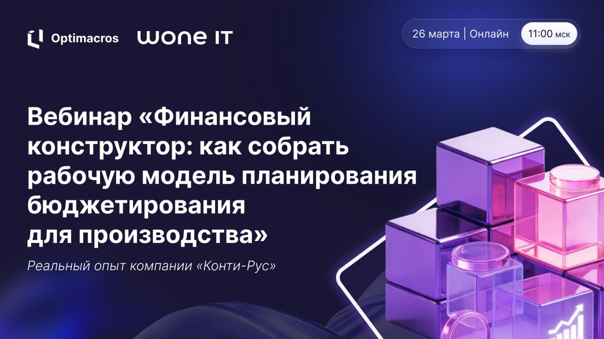? Приглашаем на практический вебинар «Финансовый конструктор: как собрать рабочую модель планирования бюджетирования для производства» от нашего партнера WONE IT. Когда: 26 марта в 11:00 мск На вебинаре эксперты покажут, как: ✔️ Сократить время на подготовку бюджета с 5–6 недель до 10 дней. ✔️ Повысить точность планирования себестоимости. ✔️ Рассчитывать операционную прибыль еженедельно, а не только по итогам месяца. ✔️ Моментально сравнивать план и факт, видеть разрывы и управлять ими. Реальным опытом поделится представитель компании «Конти-Рус». Мероприятие будет полезно: собственникам бизнеса, финансовым директорам и контролерам, руководителям ПЭО производственных компаний. 👉 Участие бесплатное, регистрируйтесь. Организатор оставляет за собой право модерации участников. #OM_вебинары #ОМ_партнеры #Optimacros #планирование #финансовоемоделирование #ПЭО #бюджетирование #финансовыйанализ 👍 Присоединяйтесь к нам на других площадках: Дзен | LinkedIn | Хабр | VC | RuTube