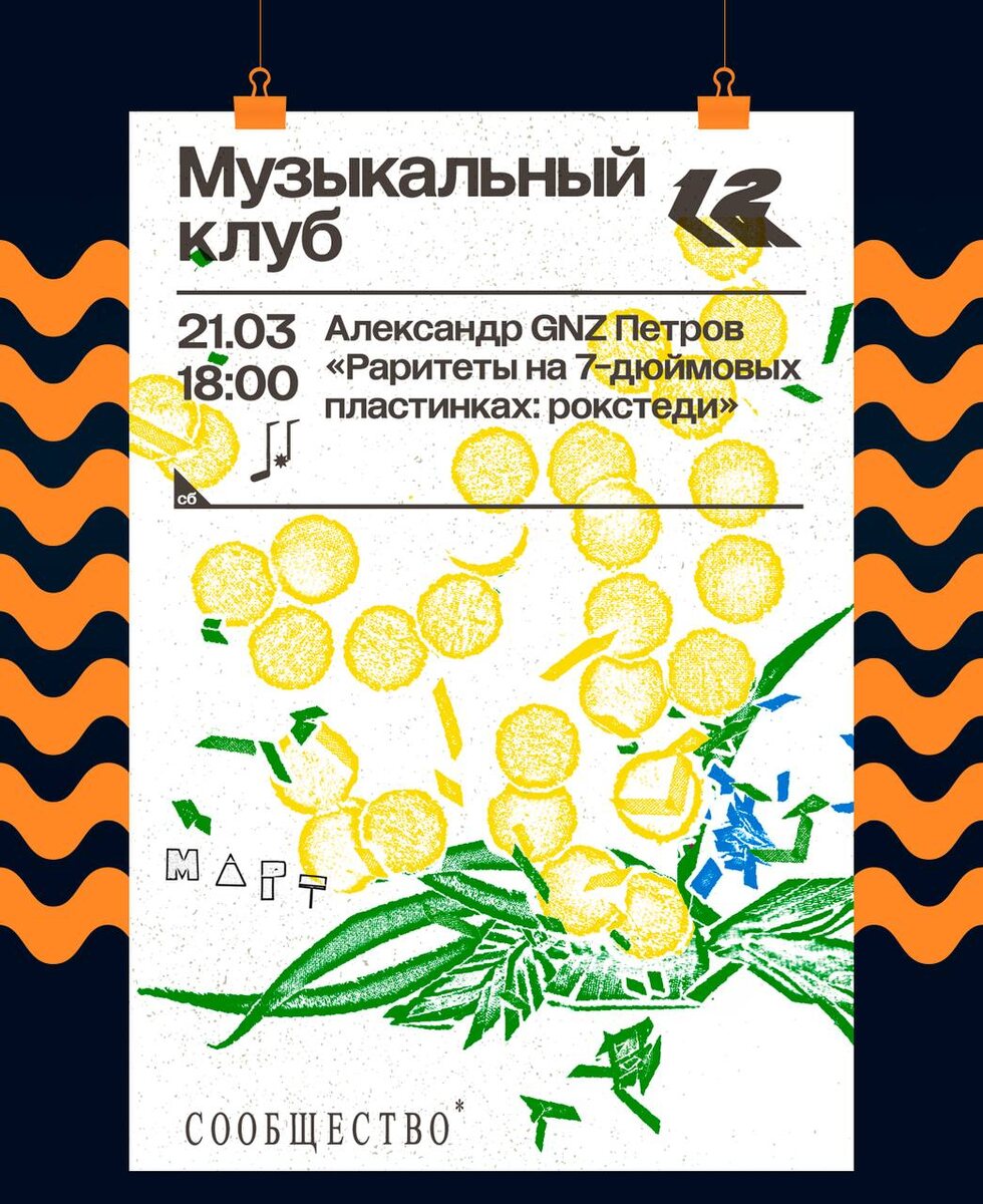 : 🗓️ 21/03 в 18:00 1️⃣ Музыкальный клуб «Раритеты на 7-дюймовых пластинках: Рокстеди» — Александр GNZ Петров (группа Mekbuda, сайд—проект Outaspace Junkyard) Чтобы погрузиться в культуру семидюймовых пластинок, мы задумали серию встреч, на которую приглашаем селектора с личной коллекцией редкостей. В первую встречу будем слушать ямайский стиль rocksteady. И через него поймем какое огромное значение имеет формат маленьких пластинок в наши дни. В аналоговом мире ямайские записи распространены, и многое из них можно услышать исключительно на пластинках. Не упустите такую возможность послушать главную музыку Ямайки 60-х. Встречаемся в эту субботу в 18:00 на острове Новая Голландия вход в "Сообщество" - 300р, билет действителен в течении всего дня. 2️⃣ расписание 💬 телеграм