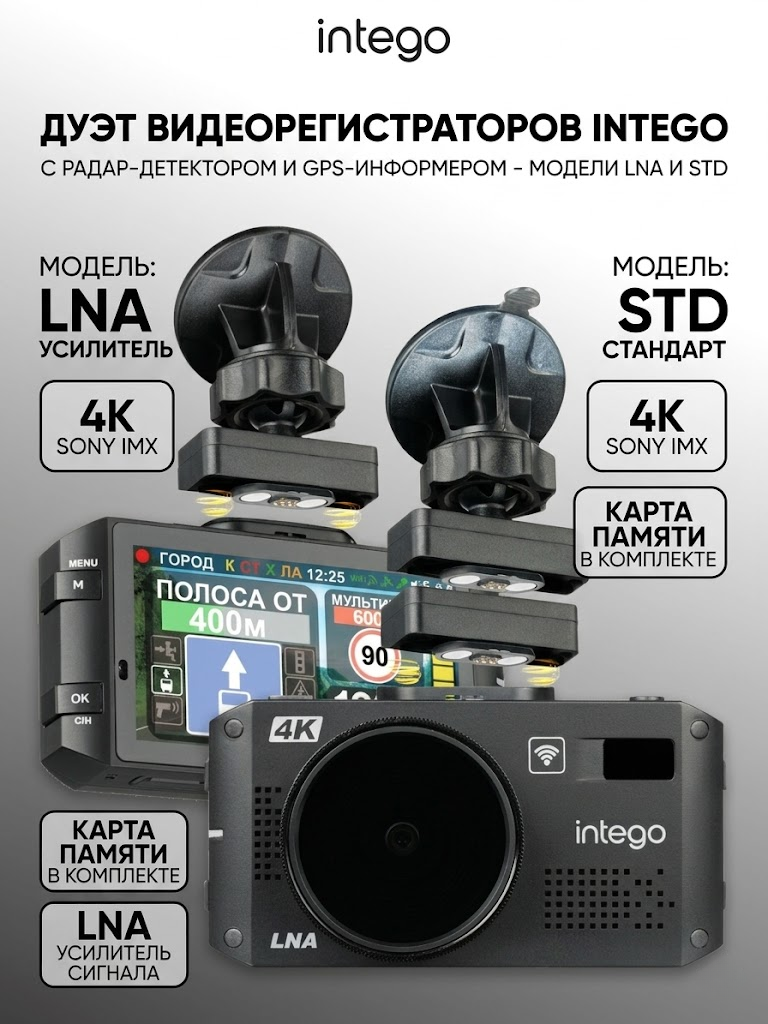 Именно поэтому многие водители теряются, когда смотрят на INTEGO VX-1300S 4K и INTEGO Kite 2.