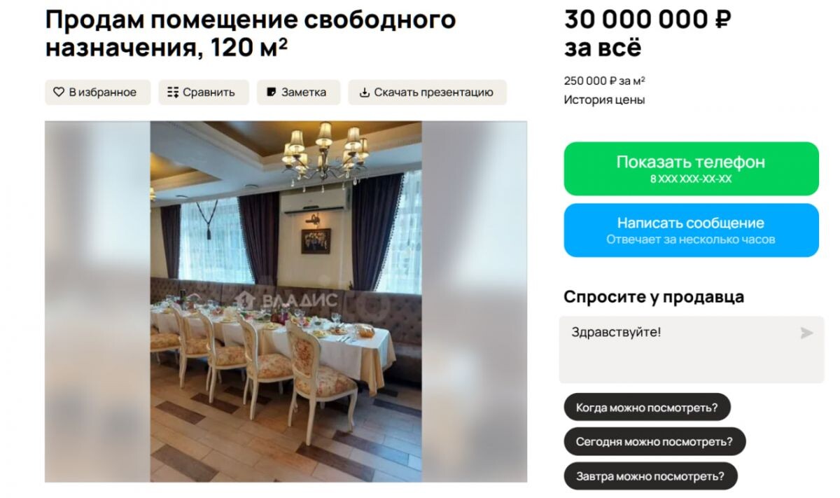 На Московском проспекте, 24 продают готовый ресторанный бизнес. Объявление о продаже заведения «Крым» появилось на платформе «Авито». Владелец оценил актив в 30 миллионов рублей. Помещение площадью 120 кв м и высотой 3,5 метра находится на первом этаже пятиэтажного кирпичного дома. К преимуществам объекта продавец относит отдельный вход, два санузла и собственную парковку. Судя по описанию, ресторан полностью готов к открытию и не требует дополнительных вложений в ремонт. Внутри уже выполнена отделка, установлены мебель и профессиональное кухонное оборудование. Проведены все необходимые коммуникации. Интернет, вентиляция, кондиционирование, смонтирована пожарная сигнализация – все имеется. В объявлении подчеркивается удачное расположение заведения. Московский проспект отличается высокой проходимостью, а наличие наземной парковки рядом с помещением делает его удобным для посетителей на личных автомобилях. Причины продажи ресторана не уточняются. Желающим приобрести готовый бизнес предла