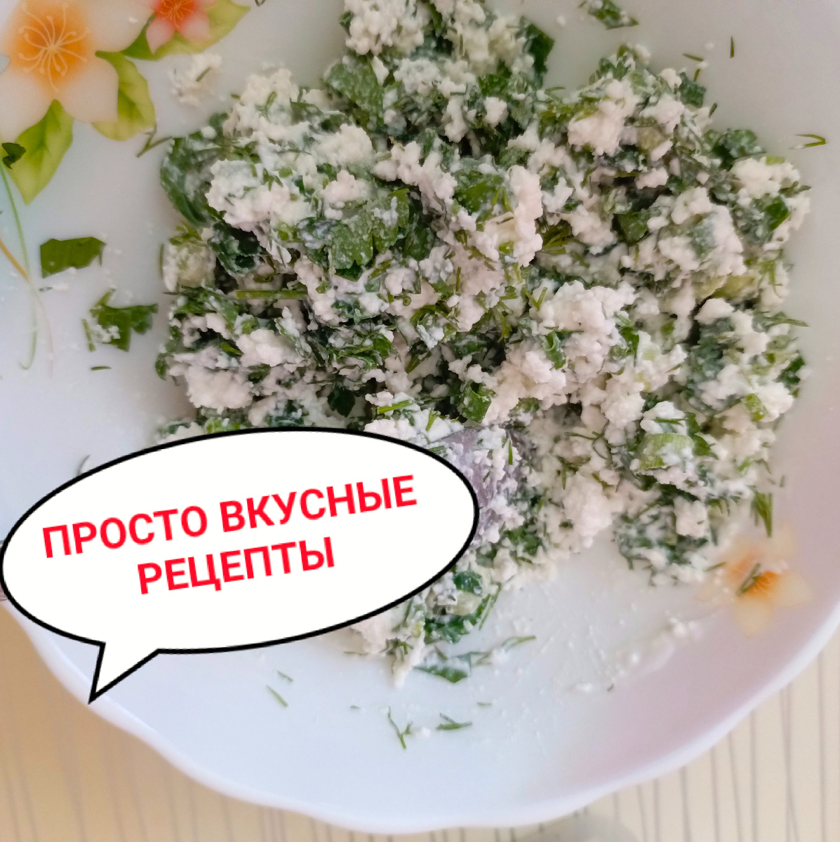 Для начинки у нас творог и зелень (свежие укроп и лук).