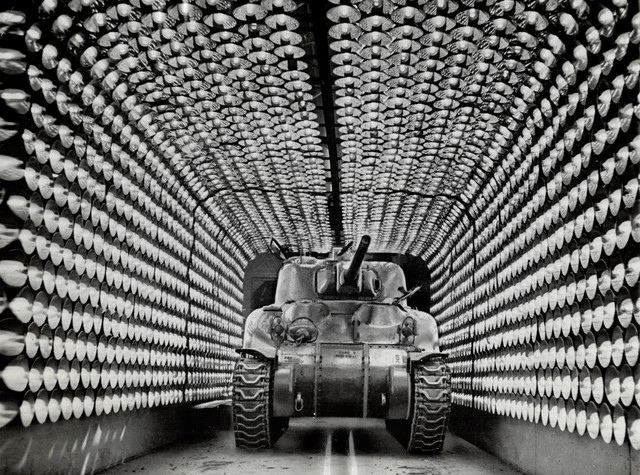 Представьте себе: танк М4 "Шерман", только что покрашенный, застрял в туннеле, полном инфракрасных ламп